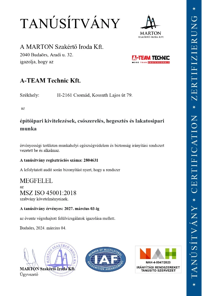 Cégünk minőségbiztosítását az alábbi tanúsítványok igazolják.